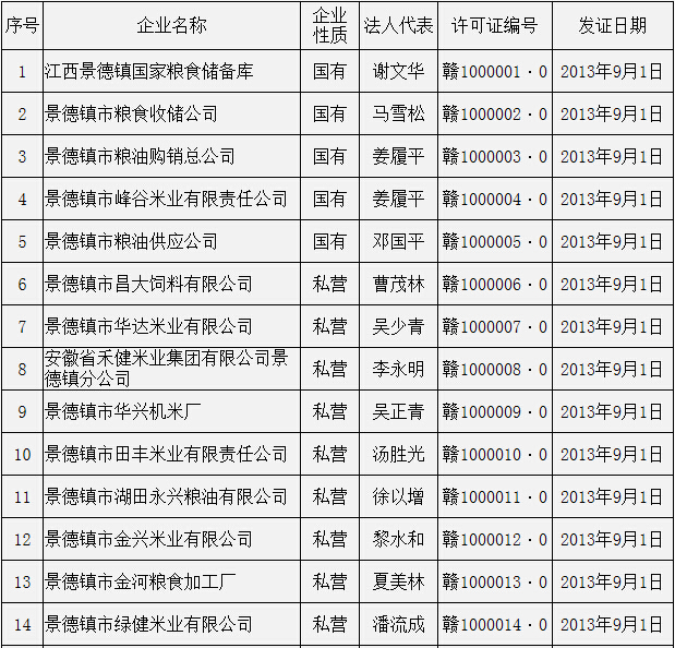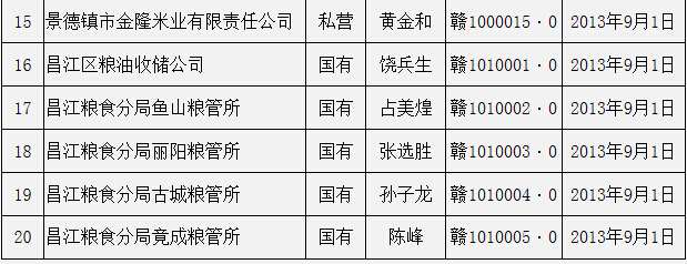 景德镇市粮食取得收购资格许可企业